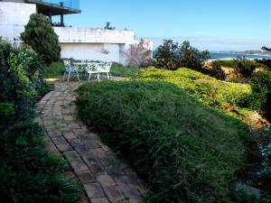 Out front ... an open garden setting for lunch next to the beach reserve.